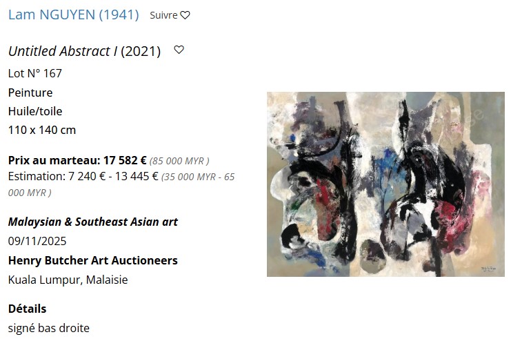 Un tableau de Nguyen Lam s’est venu aux enchères en Malaisie pour 17.582 euros !