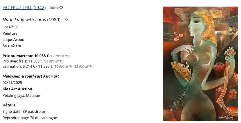 Le deuxième s’est vendu en Malaisie via KLAS ART AUCTION pour 10.088 EUROS !!